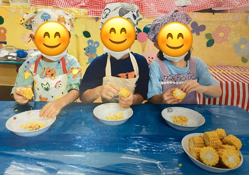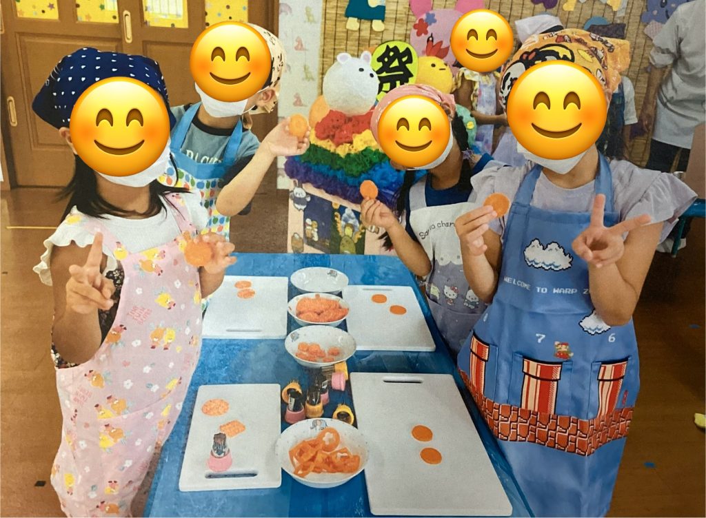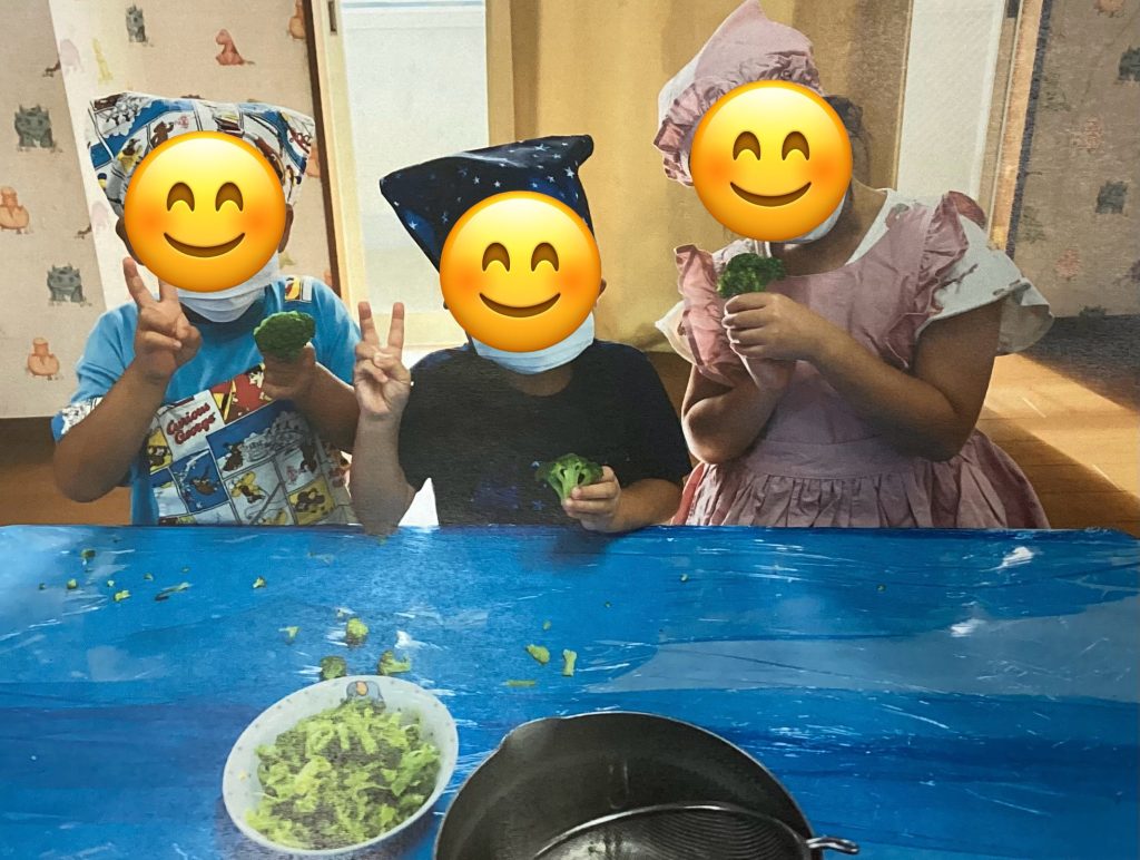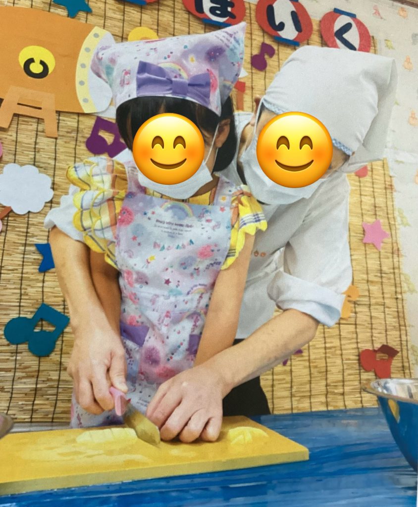 そして給食の先生と一緒にカレー作りも行いました🍛包丁でじゃがいもを切ったり、ブロッコリー、コーン、人参の型抜きをしました😆包丁を初めて使ったお友だちもいました✨️
