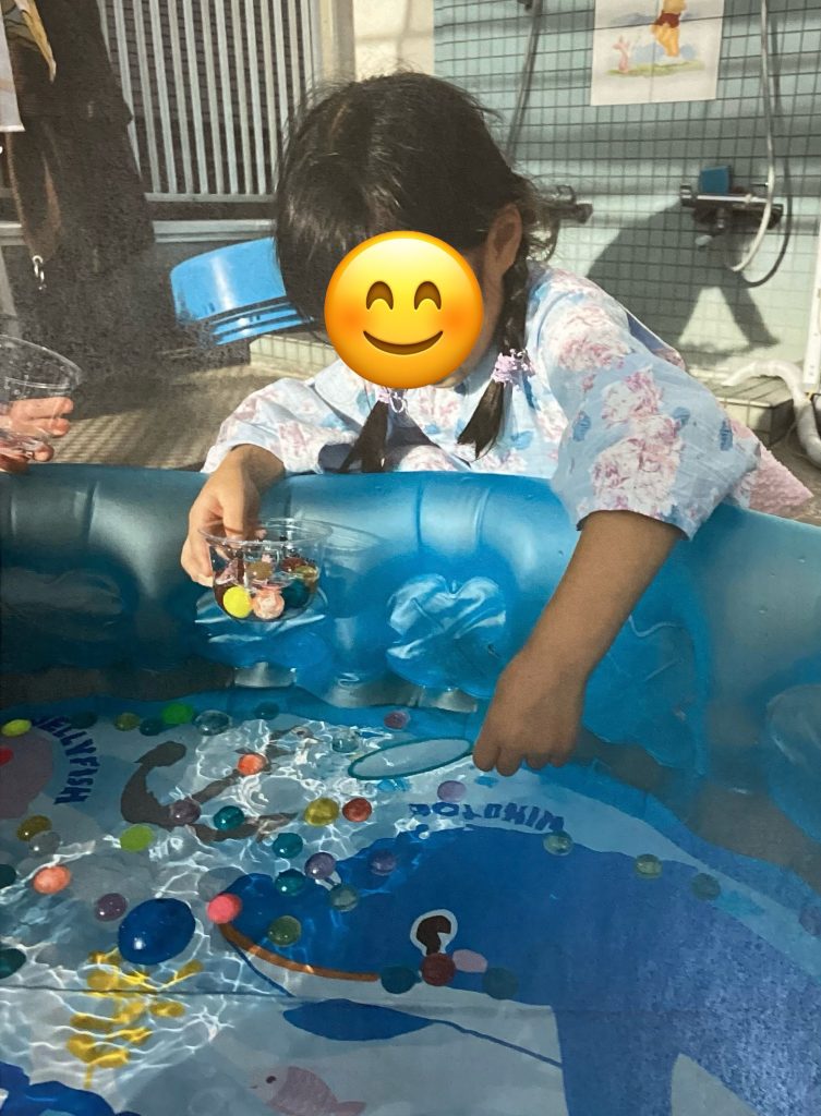 カレー作りをした後は、浴衣や甚平に着替えて夕涼み会⭐️射的やスーパーボールすくい、ヨーヨー釣り、盆踊りなどを楽しみました❣️スーパーボールすくいはコツをつかむと上手にすくえていました😁