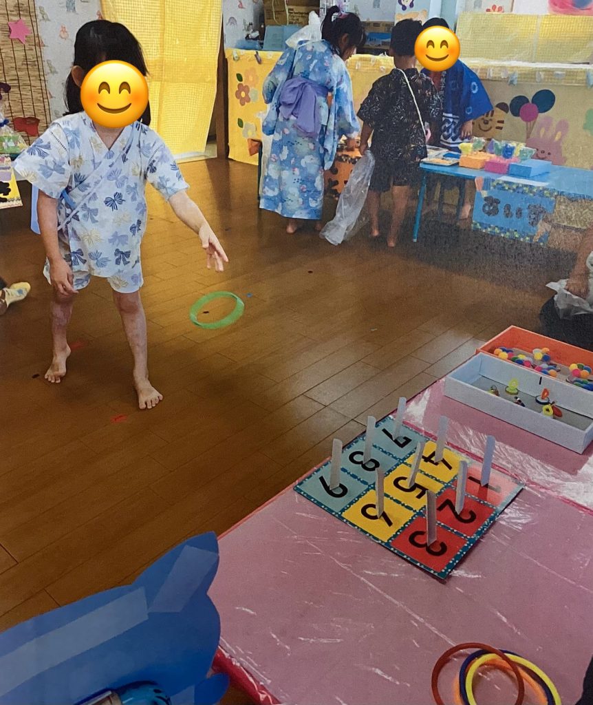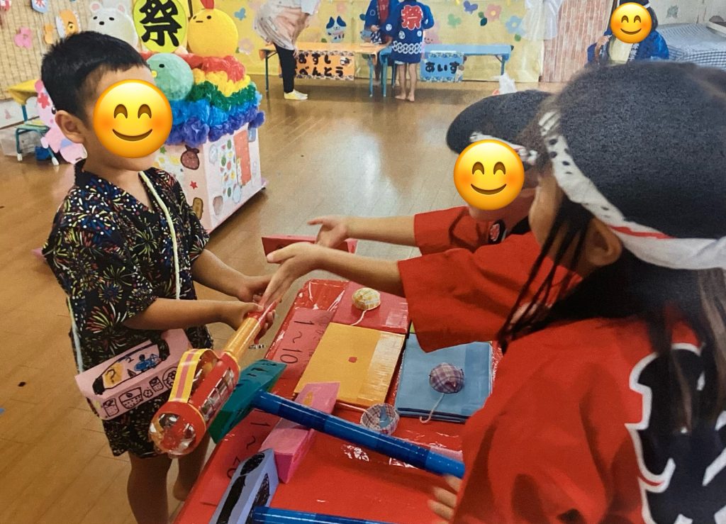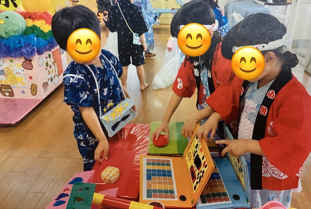 りんご組さんの8月は、なつまつりがありました😊当日を楽しみに、みんなで少しづつ準備を頑張ってきました✨️