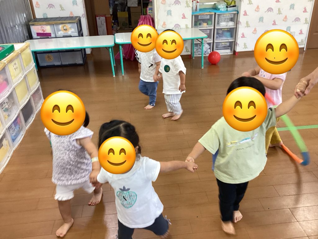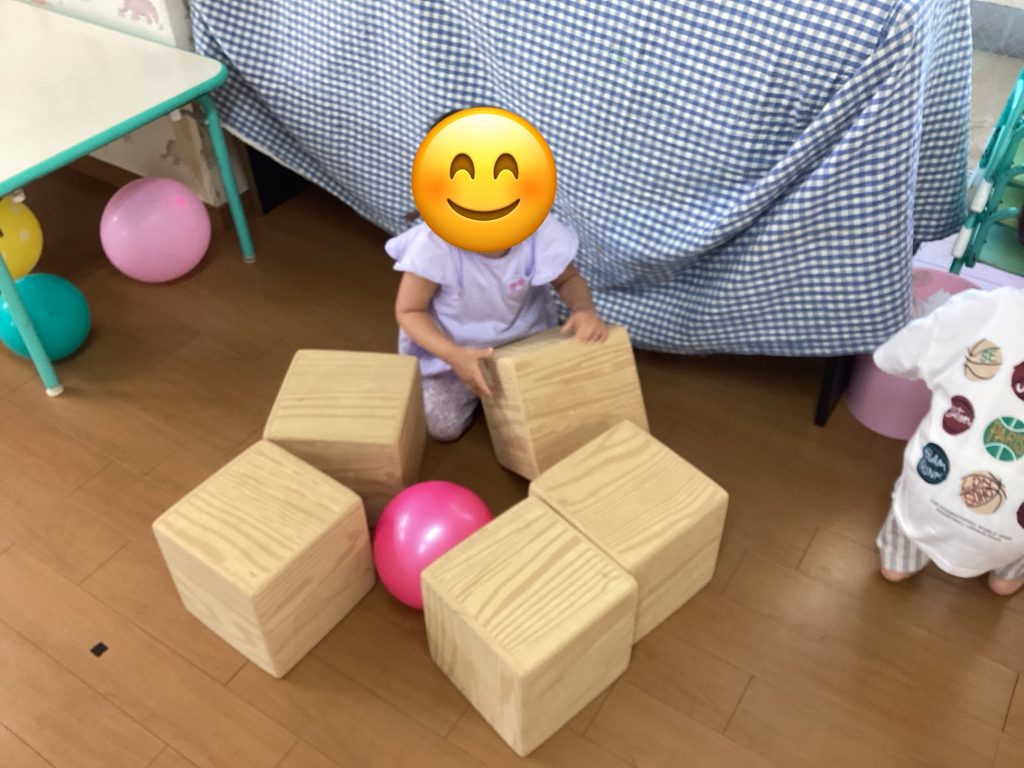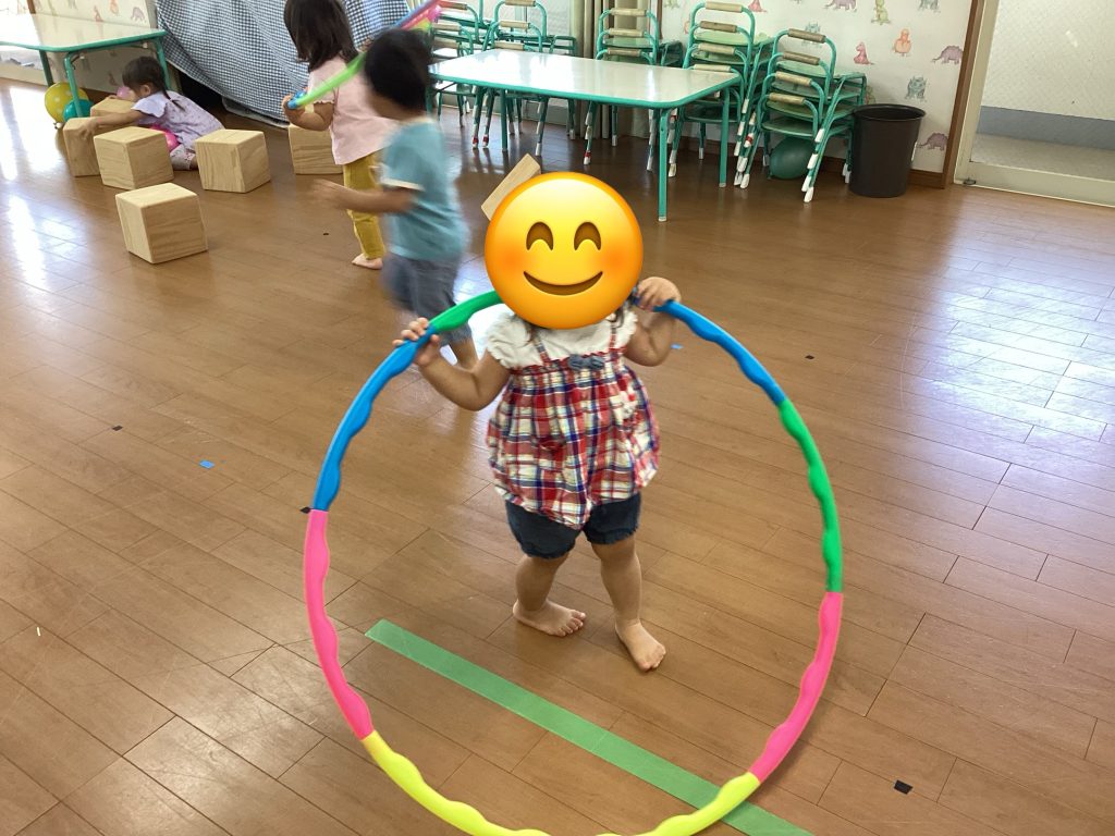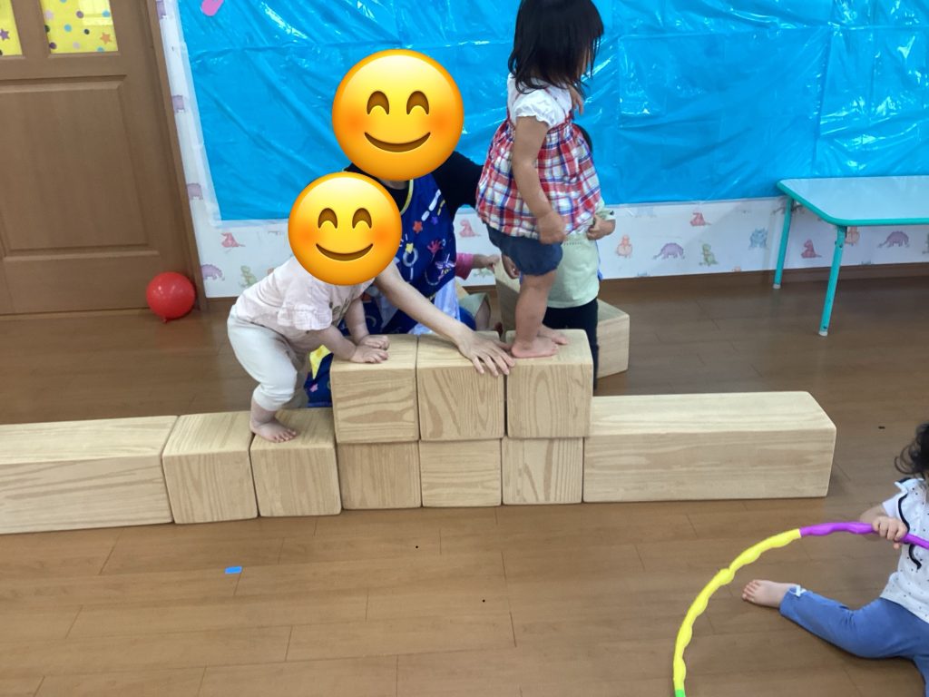 初めてのホール遊び ブログ 2025.10.01 みかん組です🍊 先日、初めて3階ホールを使用して遊びました✨ 最初はあまり使用しないお部屋なので緊張気味でしたが、大型積み木やフープ、ボールなどを出すとニコニコ笑顔になったみかん組さん🍊 大型積み木を並べて一本橋にしてその上を歩いてみたり、座ってみたり、重ねてみたりして楽しみました💕 フープも気に入った様子😄✨ お友だちとの関わりも増えてきたみかん組さん🍊 手を繋いで歩いてニコニコしていました🩷