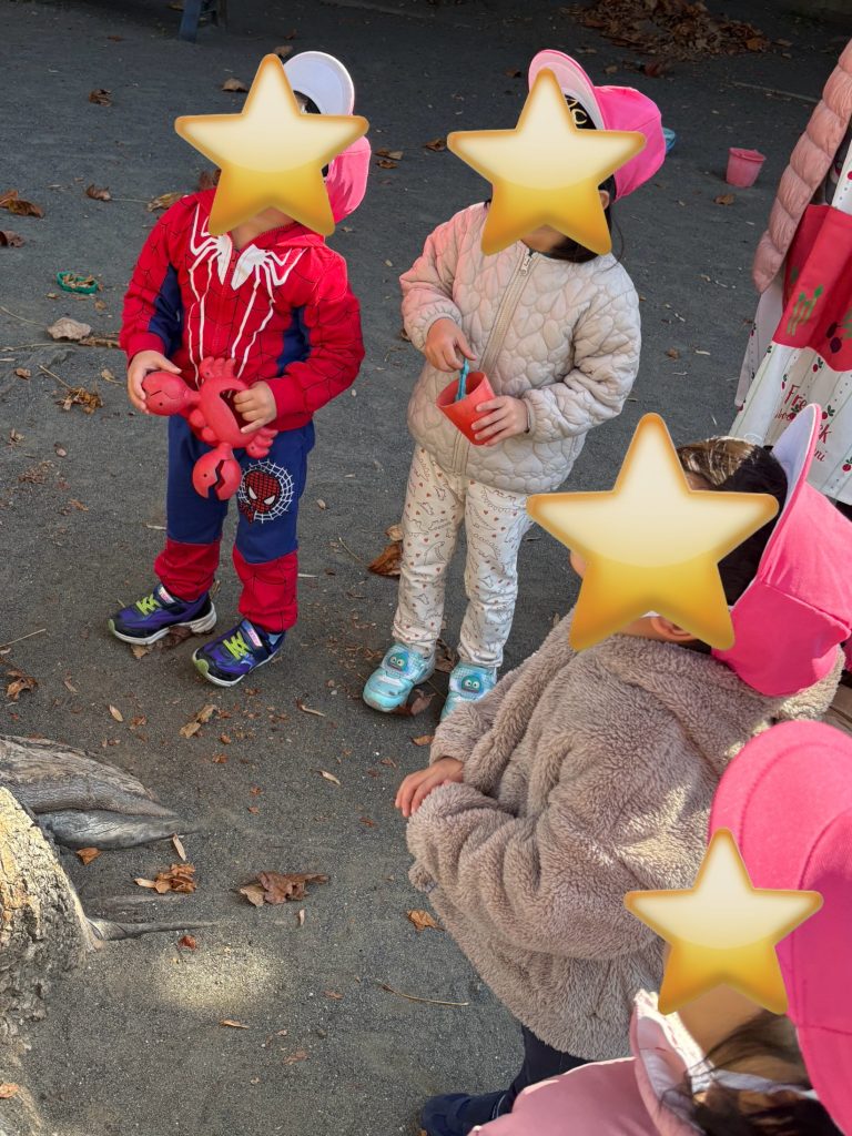 大人気のカマキリさん(#^^#) 帰り道には大きめのバッタに出くわし、『カマキリと同じいろだね!』と大興奮!! カマキリとバッタが頭の中でごちゃまぜになったのかバッタをカマキリ、カマキリをバッタと言っているお友達もいました(* ´艸`)クスクス