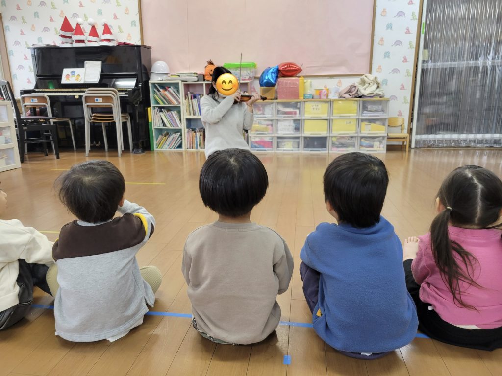 講師の先生がバイオリンを弾くと「すご〜い」と拍手喝采👏